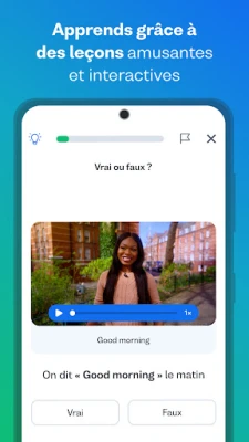 La force de Busuu réside dans ses cours de langue primés, élaborés avec soin par des linguistes experts pour s'adapter à vos objectifs précis. Que vous visiez une carrière internationale, des vacances mémorables ou une immersion culturelle, choisissez parmi nos parcours thématiques pour un apprentissage ciblé. Cette approche sur mesure, associée à notre pédagogie innovante, a prouvé son efficacité : une étude récente démontre que 22 heures passées avec Busuu équivalent à un semestre universitaire. C'est pourquoi Busuu est reconnu comme un choix d'excellence par Google et de nombreuses autres institutions.