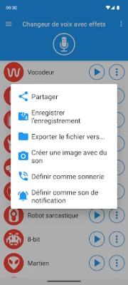 "Changeur de voix avec effets" transforme votre voix avec plus de 50 effets amusants comme l'hélium, le robot ou le monstre. Enregistrez, appliquez des effets uniques, puis partagez vos créations audio avec vos amis. Créez même des images sonores ou transformez votre texte en chanson pour un divertissement maximal.