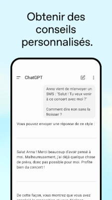 Que vous soyez en déplacement ou en quête de connaissances, ChatGPT s'adapte à vos besoins. Activez le mode vocal en touchant l'icône des écouteurs pour dicter vos requêtes, écouter des récits captivants pour vos enfants, ou obtenir des réponses rapides lors d'une discussion animée. Cette capacité vocale libère vos mains et votre esprit, vous permettant de rester productif ou simplement curieux, peu importe la situation. Imaginez générer des idées cadeaux inspirantes, des messages de vœux personnalisés, ou des conseils sur mesure pour naviguer des communications délicates, tout cela grâce à une simple conversation.