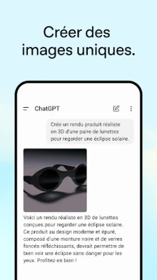 Découvrez ChatGPT, l'application qui met les toutes dernières innovations d'OpenAI à votre portée. Explorez la puissance de l'intelligence artificielle avancée et transformez votre manière d'interagir. Une technologie de pointe, simple d'utilisation pour tous.