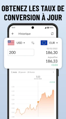 Ne manquez jamais une opportunité grâce à son widget de devises ingénieux. D'un simple coup d'œil, accédez aux taux de change mondiaux en direct, sans même ouvrir l'application principale, prenant en charge un éventail impressionnant de plus de 160 devises, des monnaies fiduciaires aux crypto-monnaies comme le Bitcoin, sans oublier les métaux précieux tels que l'or et l'argent. Que vous souhaitiez ajuster vos propres champs de conversion, explorer les graphiques historiques sur une période allant d'une semaine à cinq ans pour affiner vos décisions, ou effectuer des calculs multiples, 'Convertisseur de Devises Plus' offre une profondeur d'analyse inégalée, alimentée par les taux fiables d'AccuRate™.