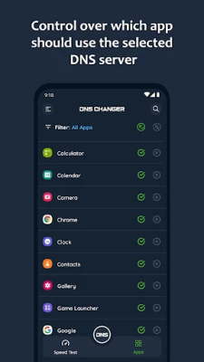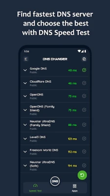 DNS Changer - IPv4 & IPv6 facilite le changement de votre serveur DNS pour une navigation rapide, sécurisée et privée. Accédez aux sites bloqués, accélérez votre connexion et améliorez votre expérience de jeu sans root, sur Wi-Fi ou données mobiles. Test de vitesse inclus pour trouver le serveur le plus rapide.