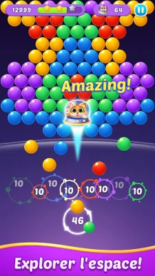 Embarquez pour une odyssée céleste avec Bubble Shooter Gem, l'aventure de bulles la plus enchanteresse et romantique qui soit. Votre mission ? Aider un adorable chat martien à s'envoler à travers le cosmos. En visant avec précision et en éclatant des constellations de bulles, vous guiderez votre compagnon félin vers des gemmes arc-en-ciel scintillantes, ascensionnant les niveaux et triomphant des défis interstellaires. C'est un voyage où la stratégie rencontre la magie, promettant des heures de divertissement captivant sous les étoiles.
