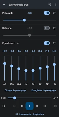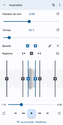 Music Speed Changer vous offre une maîtrise sans précédent sur chaque détail musical. Ajustez la hauteur tonale sur une gamme étendue de 24 demi-tons, avec la possibilité d'affiner encore plus pour une précision chirurgicale. Modifiez la vitesse d'écoute de 15 % à un impressionnant 500 % de l'original, permettant d'explorer chaque nuance d'un morceau complexe ou de survoler des contenus informatifs. La fonction de bouclage A-B, complétée par une visualisation de forme d'onde, rend l'étude de passages difficiles ou la création de répétitions sans fin étonnamment simple. De plus, un égaliseur graphique 8 bandes et un préampli intégré vous permettent de sculpter le son à la perfection, tandis que l'analyseur révèle le BPM et la tonalité musicale de chaque piste.