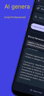 Imaginez transformer chaque instant libre en une opportunité de croissance pour votre entreprise. Avec Preventivi!, votre smartphone devient bien plus qu'un simple appareil ; il se mue en un partenaire commercial intelligent, capable de générer des devis professionnels avec une efficacité inégalée. Dites adieu aux tracas des logiciels complexes et bonjour à une simplicité révolutionnaire qui vous permet de créer, personnaliser et envoyer des offres impeccables en un clin d'œil, où que vous soyez. Preventivi! est conçu pour optimiser votre temps et renforcer votre image professionnelle, transformant la création de devis d'une tâche fastidieuse en un processus fluide et gratifiant.