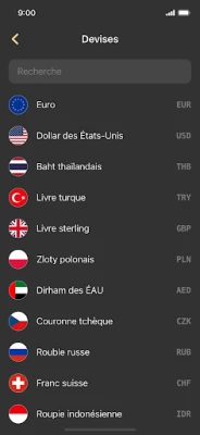 Nous comprenons l'importance d'une expérience utilisateur fluide et non intrusive. C'est pourquoi notre application se distingue par sa petite taille, optimisée pour ne pas encombrer l'espace de stockage de votre appareil, tout en offrant une performance robuste. De plus, pour un confort visuel optimal, en particulier dans des environnements faiblement éclairés ou pour préserver l'autonomie de la batterie, un thème sombre élégant est disponible. Cette combinaison de fonctionnalités avancées, de précision et de conception réfléchie en fait le compagnon idéal pour tous vos besoins de conversion monétaire.