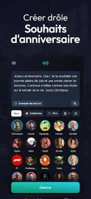 Au-delà de l'application professionnelle, Voices AI promet également un divertissement sans limite. Amusez-vous à surprendre vos proches avec des messages personnalisés, des vœux d'anniversaire mémorables, ou explorez les possibilités ludiques d'un modificateur de voix créatif. Alternez entre des tonalités effrayantes, des accents robotiques, ou des voix féminines, le tout en temps réel. Notre bibliothèque s'enrichit constamment, garantissant un accès aux sonorités les plus récentes et aux effets vocaux les plus inventifs, s'adaptant à tous les âges et niveaux techniques grâce à une conception axée sur l'utilisateur.