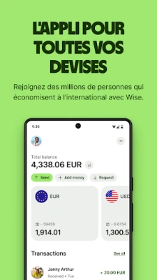 Imaginez une gestion financière qui ignore les frontières. Wise transforme la manière dont des millions de personnes et d'entreprises déplacent, envoient et dépensent leur argent à travers le monde. Finis les frais cachés et les taux de change défavorables. Avec Wise, vous accédez au taux de change réel, celui que vous trouvez sur Google, pour toutes vos transactions internationales. C'est la liberté financière transfrontalière, rendue simple et transparente, pour plus de 16 millions d'utilisateurs globalement.